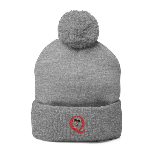 "Q" Pom-Pom Knit Cap (Embroidery)