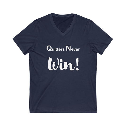 "Quitters Never Win!" Jersey Short Sleeve V-Neck Tee